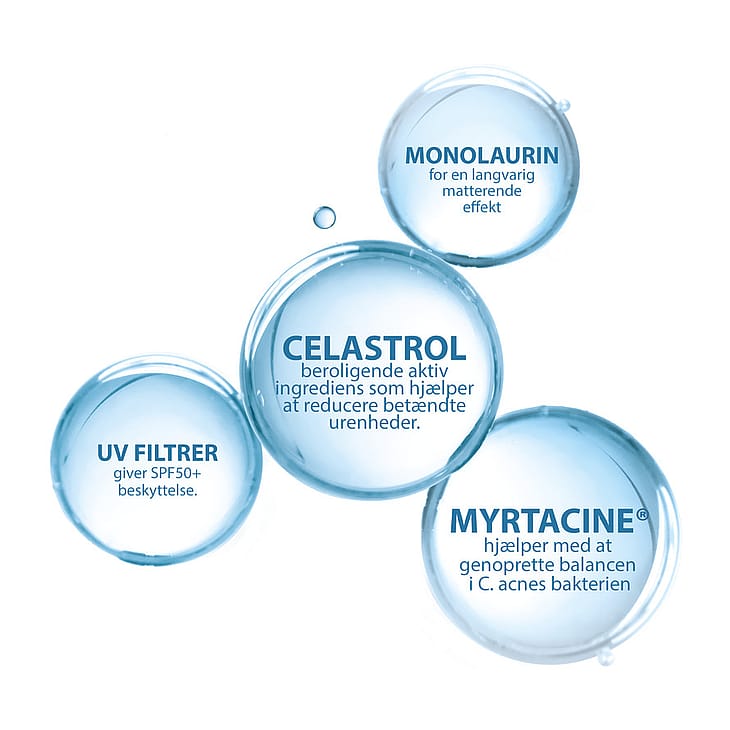 Reducerer urenheder og beskytter mod solens stråler. SPF50+