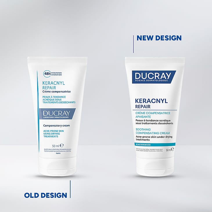 Ducray Keracnyl Repair Soothing Face Cream er en nærende og beroligende ansigtscreme, der er udviklet til hud, som er svækket eller udtørret af medicinsk aknebehandling. Cremen er ideel til både teenagere og voksne med svækket hudbarriere og med symptomer som tørhed, afskalning og følelse af stramhed.