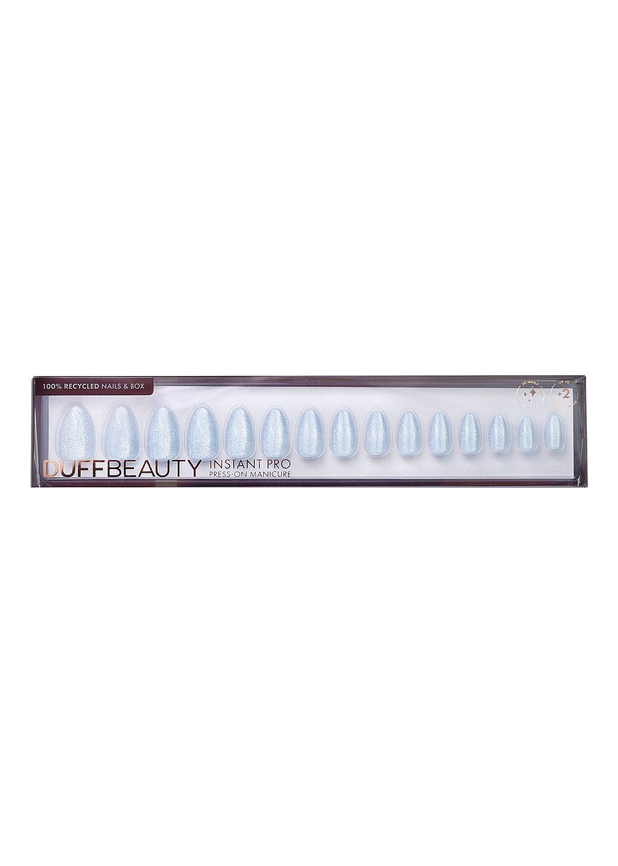 Glacier Blue har en flot kølig nuance med strøj af glimmereffekt over hele neglen. Neglene giver et festligt og elegant look.