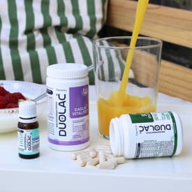 Kosttilskud. DUOLAC DUO+ D-dråber er til baby fra 2 uger, og kombinerer mælkesyrebakterier med D-vitamin.