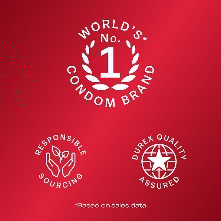 Med over 90 års erfaring indenfor fremstilling af kondomer kan du være sikker på, at alle Durex’ kondomer er lavet af råmaterialer i højeste kvalitet. Durex’ kondomer er desuden dermatologisk testet og elektronisk testet for huller og fejl – der udføres yderligere 5 kvalitetstests for hvert parti.