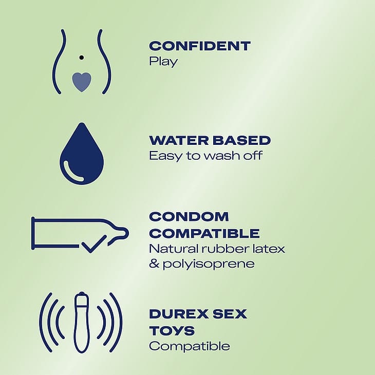 Kondomer og sexlegetøjKan anvendes sammen med latexkondomer, polyisoprenkondomer og sexlegetøj fra Durex.