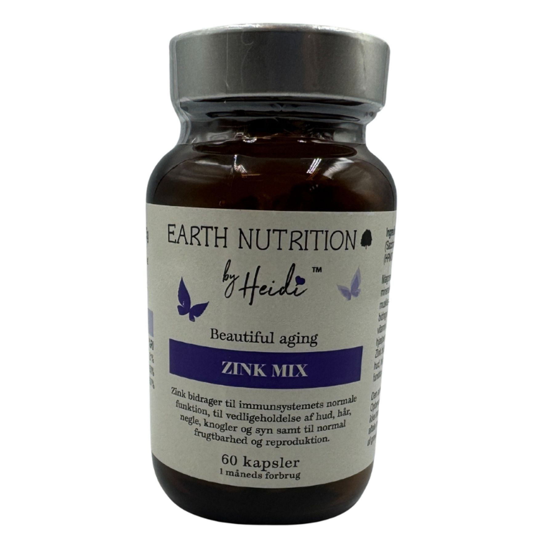 Kosttilskud til voksne. Earth Nutrition Zink MixEarth Nutrition Zink Mix kombinerer magnesiumbisglycinat, zinkgær og aktivt vitamin B6 (P5P) – i en form, kroppen lettest kan genkende og anvende. 60 veganske kapsler – 1 måneds forbrug.