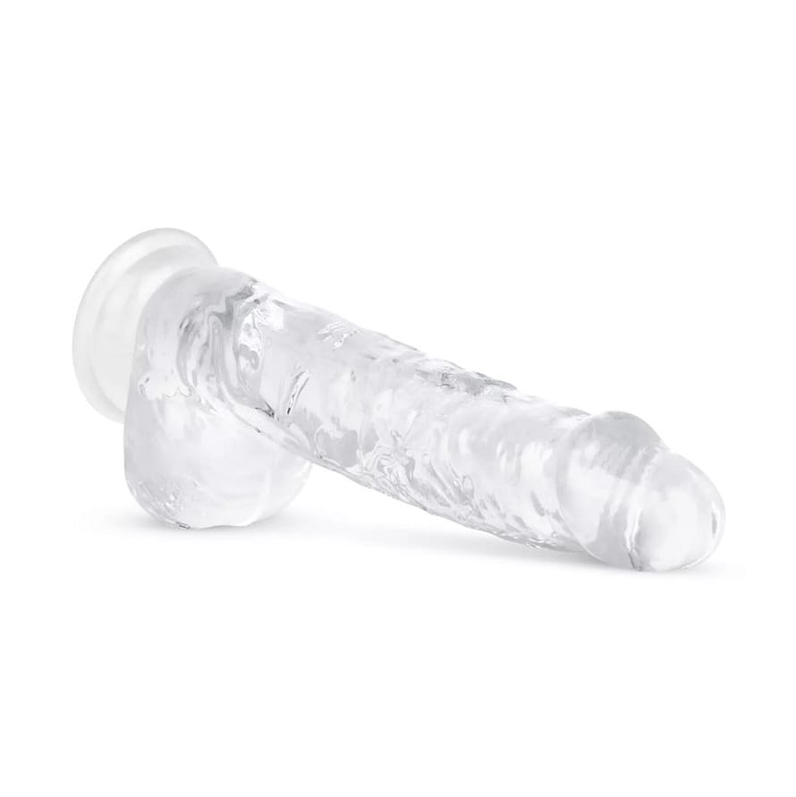 Med alle de ønskværdige kvaliteter fra en rigtig penis - herunder et struktureret skaft, en fremtrædende spids og realistiske testikler - er denne dildo fremstillet af gennemsigtig gelé, hvilket gør den ekstra tiltalende.