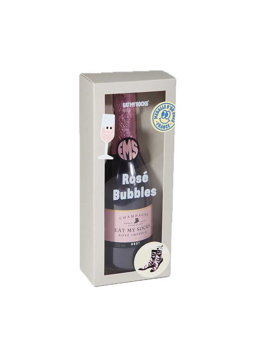 Gør hverdagen mere festlig med Rosé Bubbles strømperne, der er pakket i en unik "champagneflaske"-æske. Perfekt til vinelskere og dem, der elsker lidt luksus i deres hverdag.