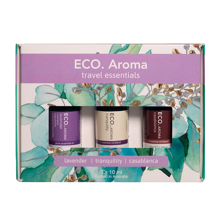 Indeholder tre vigtige olier der øger dit velbefindende på rejsen med Lavendelolie, Tranquility blend og Casablanca blend.