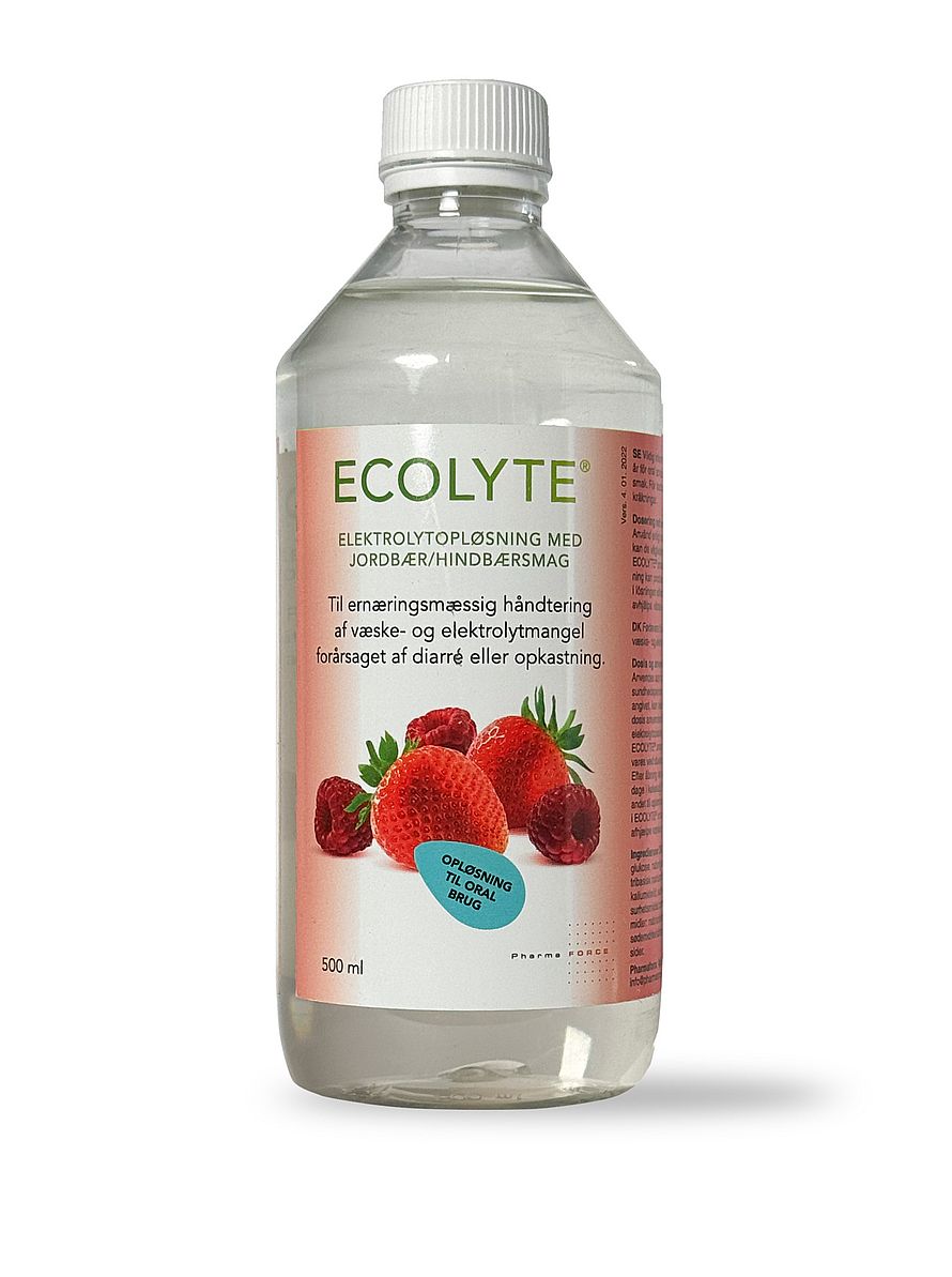 Færdigblandet, klar til brug hypo-osmolær (249 mOsm/L) oral rehydreringsopløsning på 500 ml. ECOLYTE produkterne er klar til brug og dermed er der sikkerhed for at osmolariteten i rehydreringsvæsken er korrekt. Der skal derfor ikke tilsættes yderligere væsker (saft, juice) eller andet til opløsningen, da elektrolytterne i ECOLYTE er sammensat specielt til at afhjælpe væske og elektrolytmangel forårsaget af diarré eller opkastning.