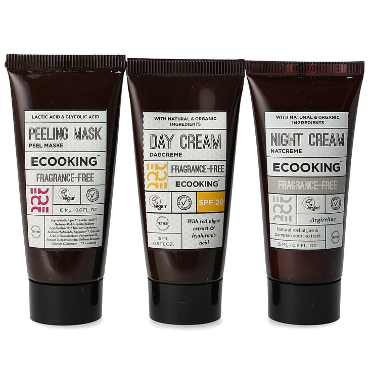 Peel Maske, Natcreme Parfumefri og Dagcreme SFP 20 forkæler din hud til hverdag og på spadagen. Sammensørger de tre parfumefrie produkter for at eksfoliere, fugte, beskytte og give huden naturlig glød.