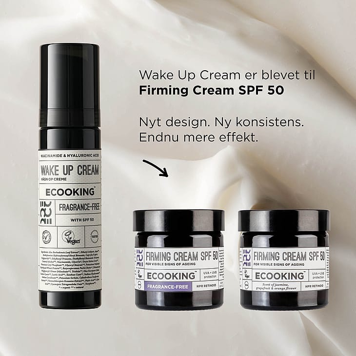 Firming Cream SPF 50 falder i den kategori, som hudplejebranchen typisk kalder ”anti-age”. Hos ECOOKING lægges der i stedet vægt på, hvilke resultater produktet giver – og det viser sig særligt effektivt til at mindske synlige alderstegn som fine linjer samt give ansigtet fornyet vitalitet, glød og fylde.
