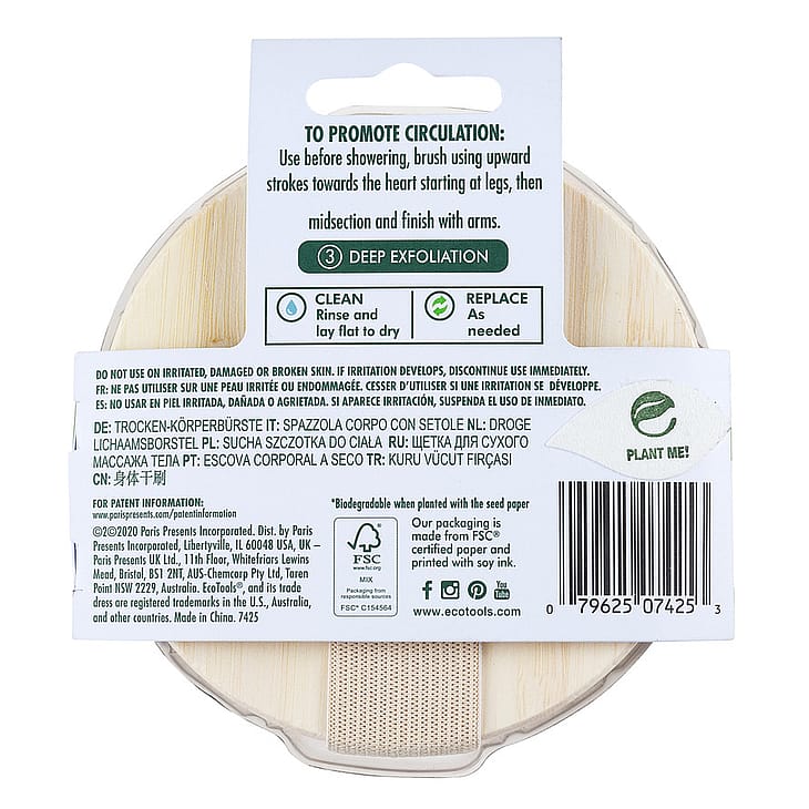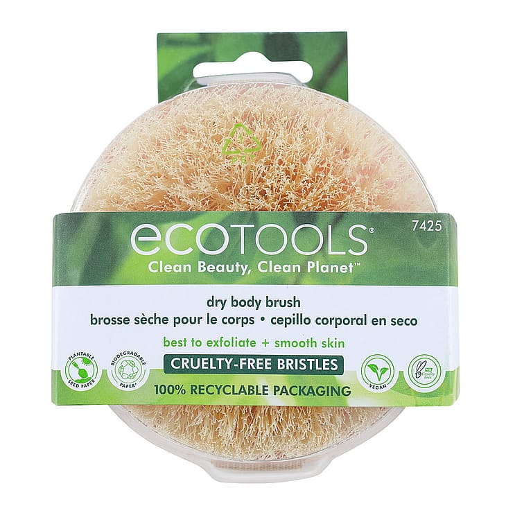 EcoTools Dry Brush er en tørbørste designet med syntetiske hår, som exfolierer huden og efterlader den blød, glat og strålende.
