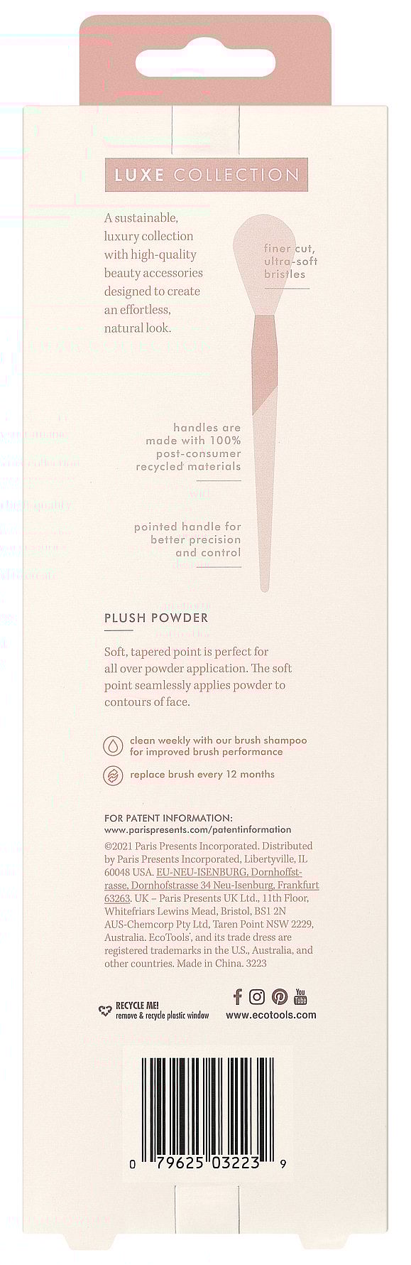 EcoTools Luxe Plush Powder Makeup Brush har ultrabløde, tætpakkede børstehår for en luksuriøs fornemmelse på din hud med maksimal produktoptagelse.