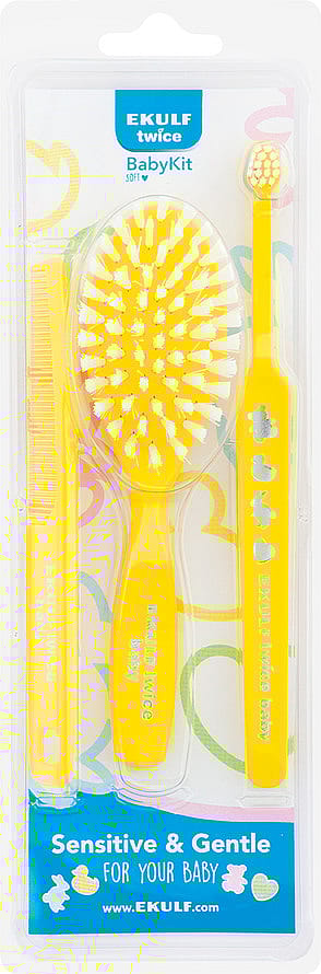 Fungerer fintBørsten har den helt rette balance af blødhed, og vores baby elsker den. Tandbørste og kam har vi ikke brugt endnu.
