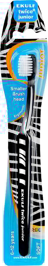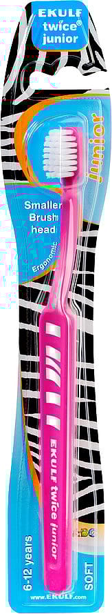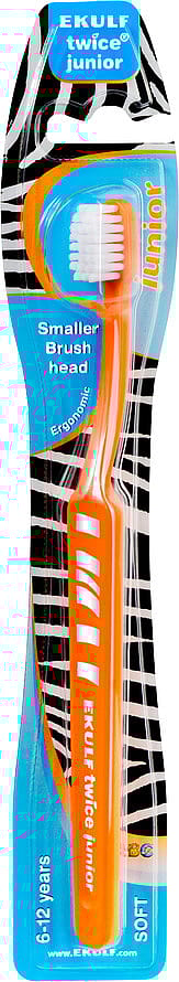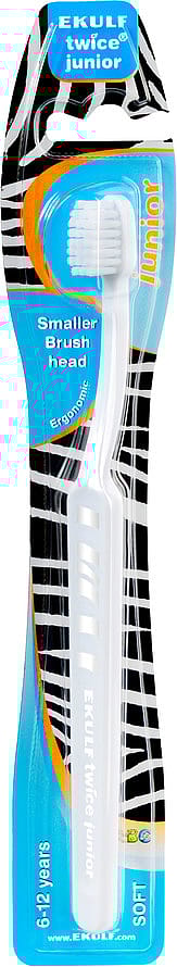 EKULF twice junior 6-12 år er en helt ny tandbørste som er tilpasset efter tandens størrelse og personens alder og mund.