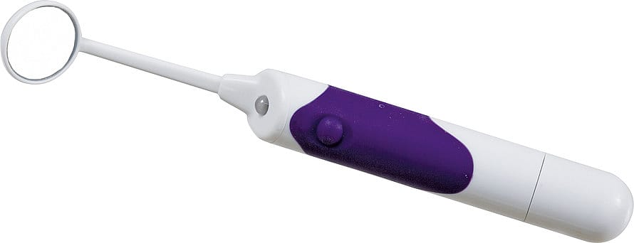 Et godt mundspejl med lys der gør det muligt på en smidig måde selv at kontrollerer sine tænder og tandkød.