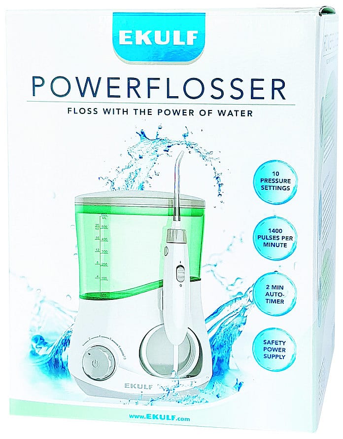 PowerFlossers vandstråle pulserer 1400 gange pr. minut, masserer tandkødet og øger blodcirkulation. Den holder dit tandkød frisk og stærkt og er mere blid end traditionel tandtråd. Tippen kan rotere 360 grader og strålen gør det lettere at rengøre kroner, broer, implantater og bøjler.