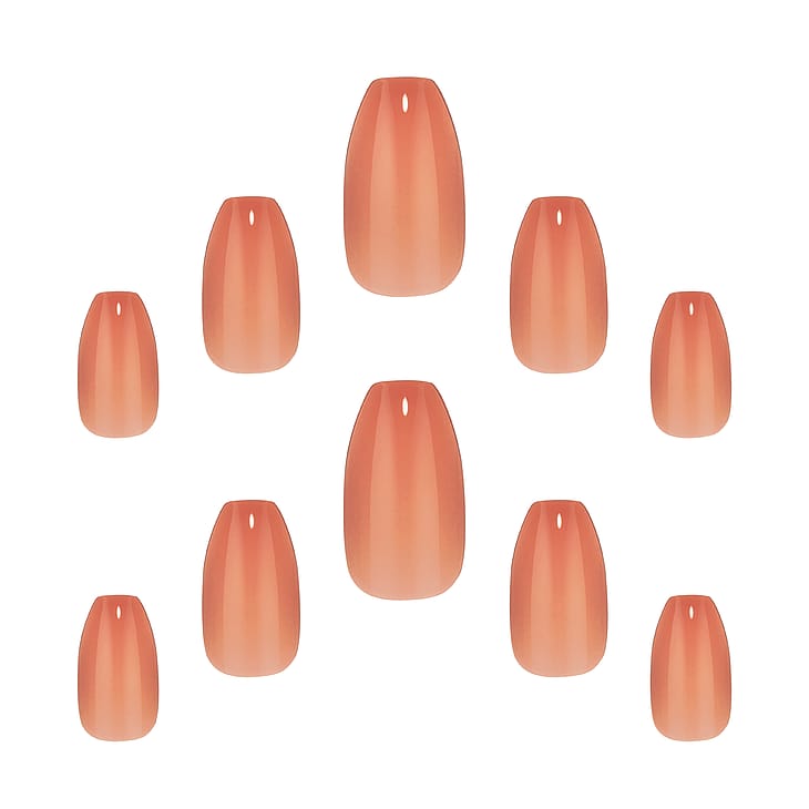 Kunstige Negle – Sheer TintDisse kunstige negle i coffin-form i nuancen Rosewood Blush har en blid ombre-effekt ved spidsen, der giver et poleret og stilrent finish. Neglene er designet til at være nemme at påføre og kan tilpasses din personlige stil med lim eller gel. Produktet er velegnet til både hverdag og særlige lejligheder, hvor du ønsker et gennemført look med et diskret farvespil.