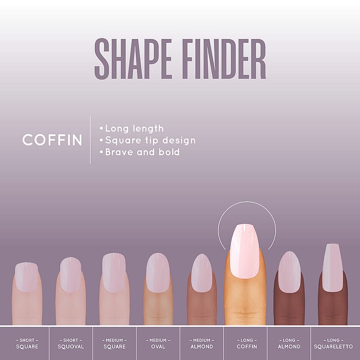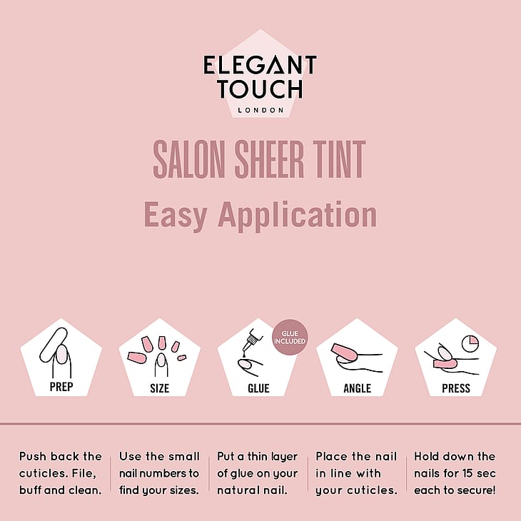AnvendelsesrådVælg den rette størrelse for hver finger og forbered din naturlige negl ved at affedte og file let. Brug en neglelim eller en tynd gel til at sætte neglen på, og hold positionen i nogle sekunder for at sikre kontakt. Ved formtilpasning kan en fin neglefil bruges; arbejd altid i små trin for at undgå at knække kunstneglen. Ved fjernelse anbefales blid opløsning af limen eller professionel hjælp for at bevare din naturlige negl.