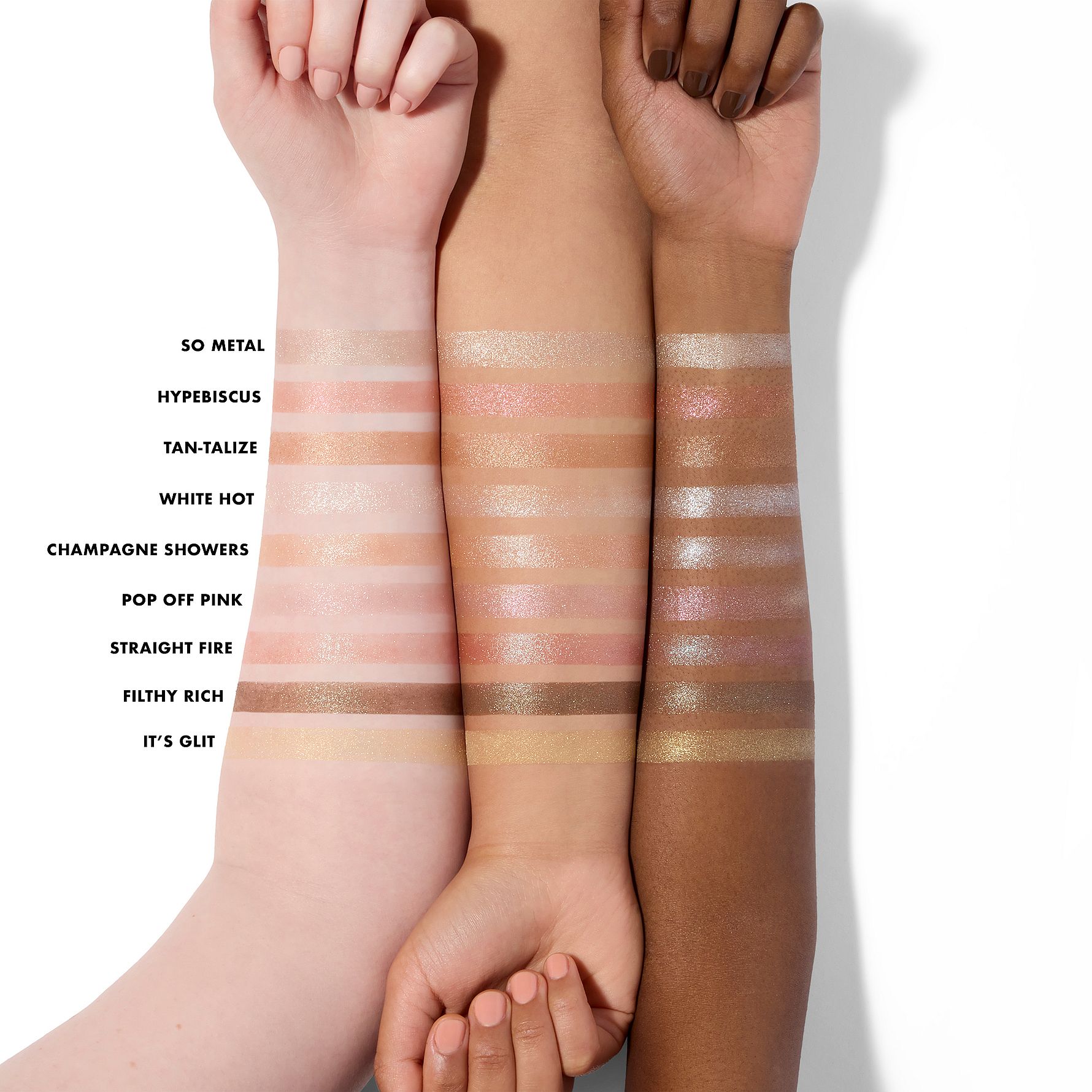 En let, glitrende øjenskygge-topper med mikrofin glitter, der kan bruges alene eller oven på øjenskygge for en langvarig, strålende effekt.