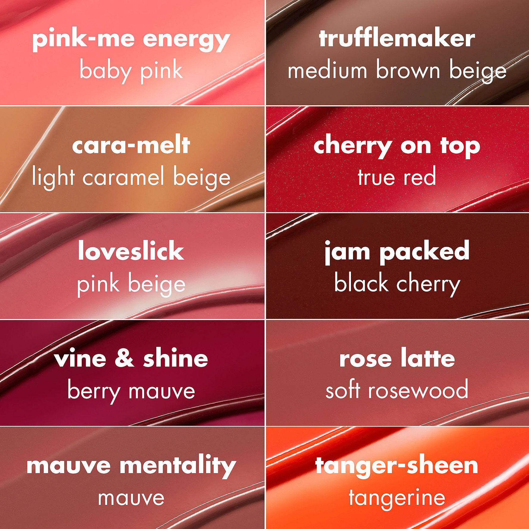 • Pigmenteret læbestift–olie-hybrid, der glider let henover læberne uden klæbrighed