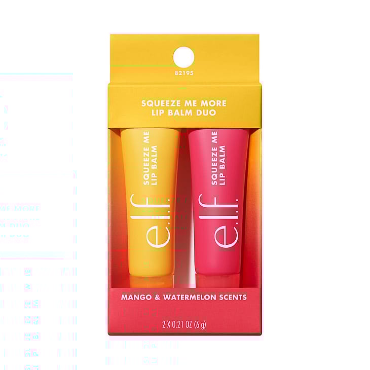 e.l.f. Cosmetics' Squeeze Me More Lip Balm Duo indeholder 2 af favoritterne inden for læbepomader i nye og eksklusive dufte og nuancer – Mango og Vandmelon.