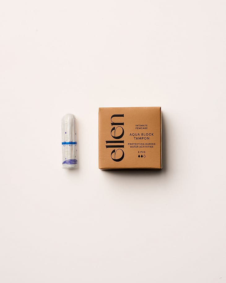 ellen® Aqua Block Tampon er en unik tampon specielt designet til badning og svømning med en vandtæt barriere. Den vandtætte barriere forhindrer forurenet eller kloreret vand i at trænge op i skeden og påvirke den naturlige pH-balance.