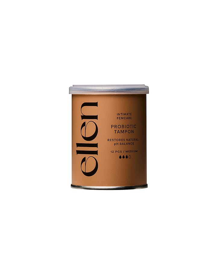 ellen® Probiotic Tampon er en unik tampon beriget med probiotika, der hjælper med at bevare underlivets naturlige pH-værdi. Probiotikaen består af de samme mælkesyrebakterier, som naturligt findes i en kvindes sunde underliv og hjælper med at holde de dårlige bakterier væk. ellen® Probiotic Tampon Medium passer til dem, der bløder "normalt" og kan være god som mellemtrin under menstruationen.