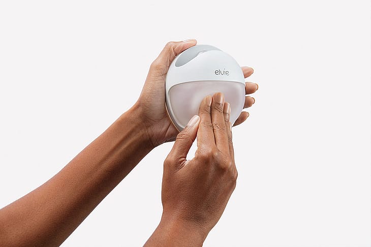 Ammende kvinder kan bruge Elvie Curve til nænsomt at pumpe brystmælk ud, hvis deres bryster føles tunge, eller til nedløb på det modsatte bryst under amning eller udpumpning.