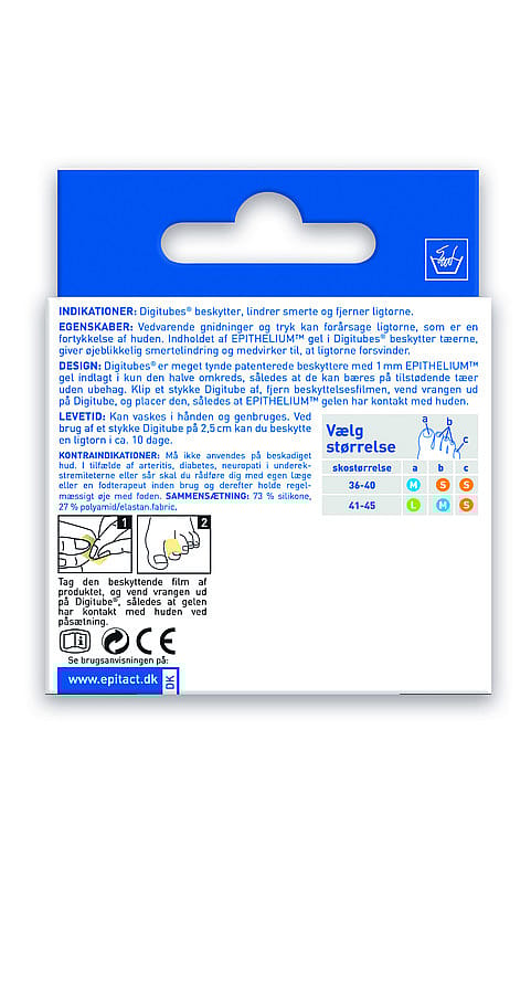 - Tynde, patenterede tåbeskyttere/Digitubes med 1 mm EPITHELIUM™ gel