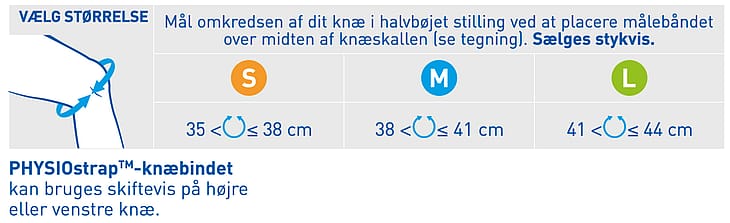 INDIKATIONER: EPITHELIUMFLEX® PHYSIOstrap™ er et knæbind, der lindrer og beskytter det sarte eller smertefulde knæ (ved slidgigt, lidelser i knæskallen, skrøbelige ledbånd mv.). Knæbindet giver en følelse af stabilitet, således at du kan fortsætte eller genoptage dagligdagsaktiviteter og dermed glemme alt om det.