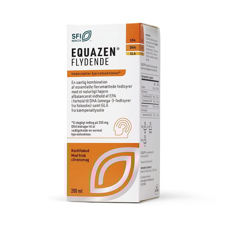 Fiskeolien i Equazen indeholder fedtsyren DHA som bidrager til at vedligeholde en normal hjernefunktion, ved et dagligt indtag på 250 mg DHA.*