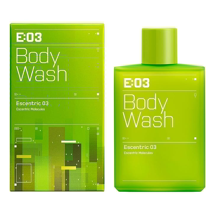 Bygget omkring en glat og træagtig Vetiver-molekyle med en opkvikkende grapefrugtaccent, er Escentric 03 Body Wash beriget med frisk og opfriskende lime skræl, ingefær, grøn peberkorn og moskus, der efterlader kroppen indhyllet i de urteagtige noter af Escentric 03.
