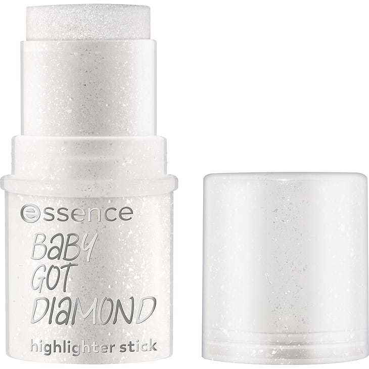 Få din hud til at stråle med essence BABY GOT DIAMOND highlighter stick. Stiften er fyldt med sølvglitrende glimmer, der giver øjeblikkelig glød til dit look med et enkelt strøg. Det brugervenlige format og glidende formel gør påføringen let, uanset om du er hjemme eller på farten. Den gennemsigtige flaske med sølvglitter gør denne highlighter til et blikfang i din håndtaske.
