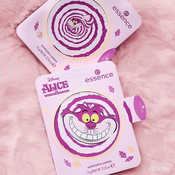 Tilføj trendy elegance til din skønhedsrutine med øjenskyggepaletten 01 All Smiles Here fra essence, inspireret af Disneys Alice i Eventyrland.
