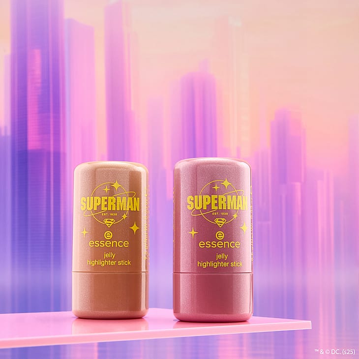 Få din indre glød frem med essence Superman jelly highlighter stick 01 Undefeated i blød rosa og 02 Mighty i en let champagnefarve!