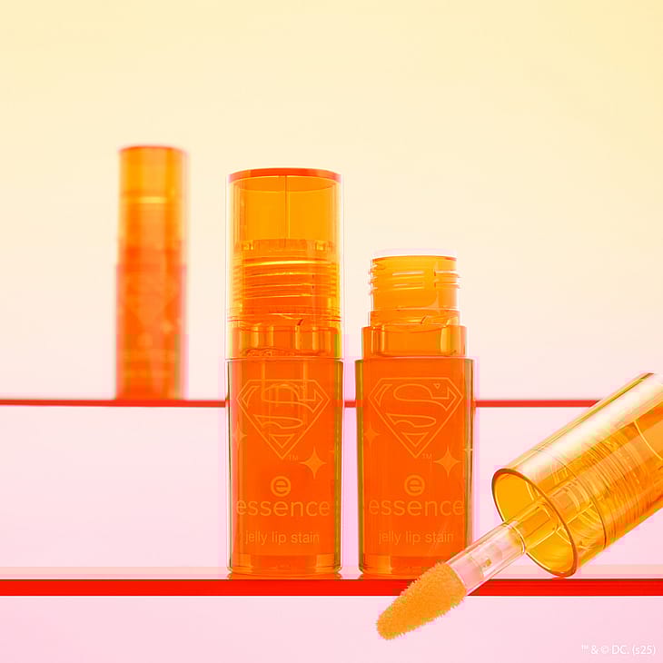 Få perfekte læber hele dagen med essence Superman jelly lip stain 01 Wham! i en dristig kirsebærfarve og 02 Pow! i en orange-pink nuance!