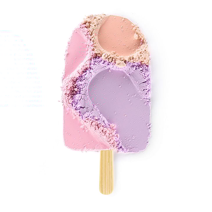 Et rosa og et ferskenfarvet pudder til lysning under øjnene og et lilla pudder til korrektion af gule undertoner.