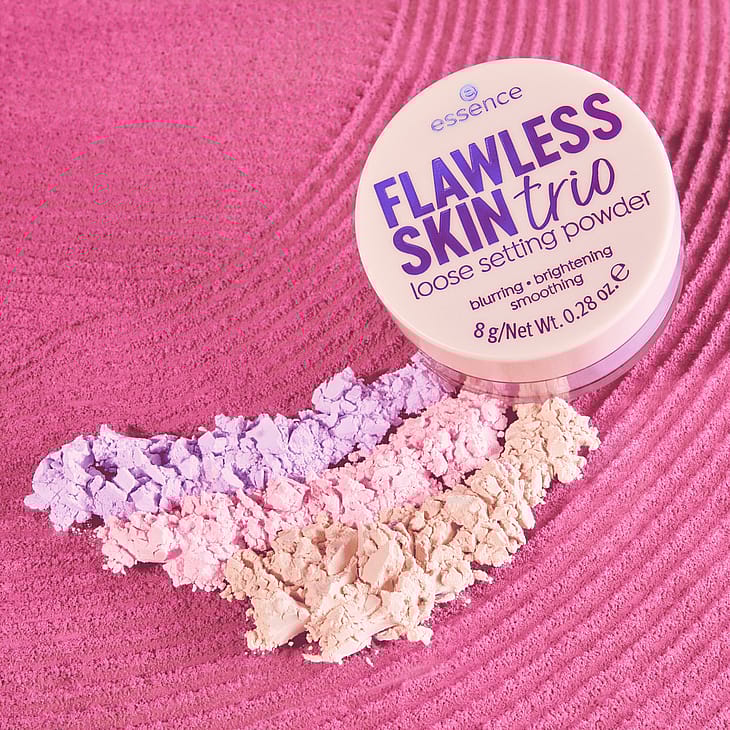 Løft din farvekorrigeringsrutine med essence FLAWLESS SKIN trio loose setting powder 10.