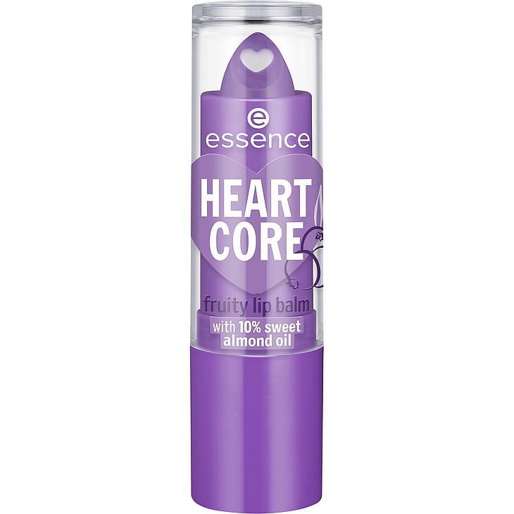 Opfrisk din makeup, mens du er på farten, med essence HEART CORE fruity lip balm 06 Amazing Acai.