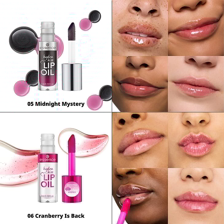 Forkæl dine læber, og giv dem skinnende glans med essence hydra kiss LIP OIL 06 Cranberry Is Back. Læbeoliens tekstur er gennemsigtig, men når den påføres læberne, toner den dem i en lyserød farve. Takket være den nærende tekstur har læbeolien den perfekte kombination af skinnende finish og solbeskyttelse.