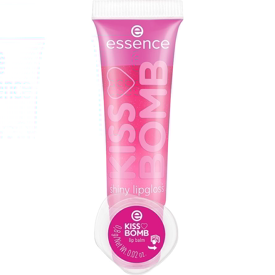 Gør dig klar til skinnende læber sødeste kys med essence KISS BOMB shiny lipgloss & lip balm 01 Strawberry Sweetie!