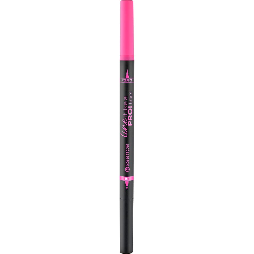 Prøv den ultimative eyeliner essence line it like a PRO! liner 01 black – din 2-i-1-løsning til fejlfrie øjenlooks. Den ene ende har en præcis filtspids til skarpe, definerede linjer og ensartet, kontrolleret påføring. Spidsen i den anden ende indeholder eyelinerfjerner, så du nemt og hurtigt kan rette eventuelle fejl. Uanset om du laver katteøjne eller diskrete linjer, er denne eyeliner perfekt.