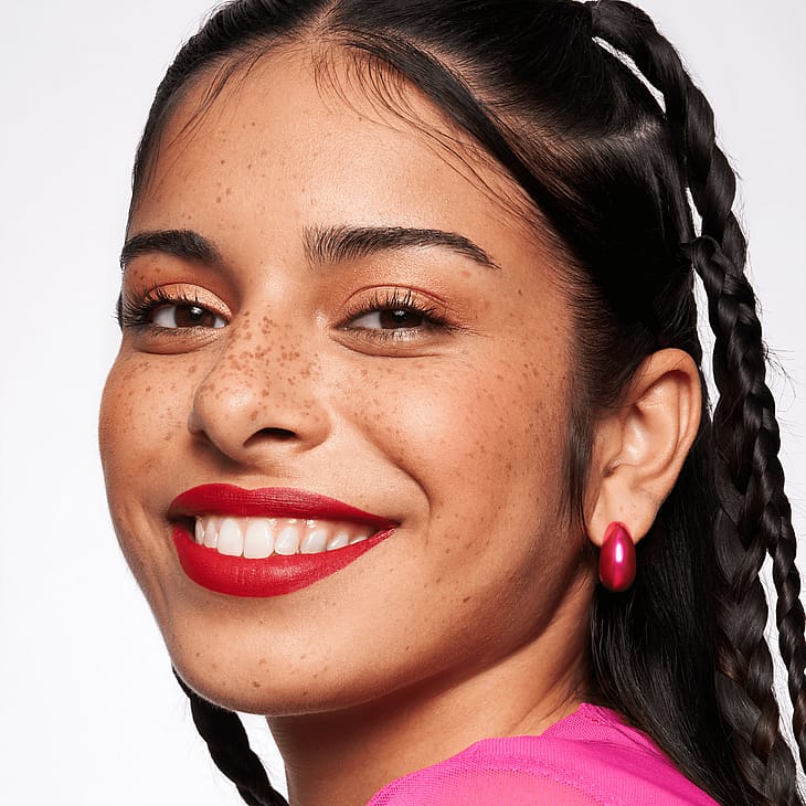 Læbestiften byder på en cremet konsistens og en fløjlsmat finish.