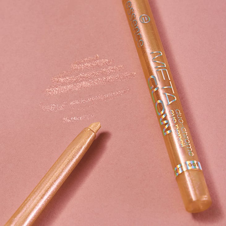 Fremhæv dine øjne med essence META GLOW duo-chrome eye pencil 01 Chromatic Love - for en individuel øjenmakeup med en kosmisk effekt.
