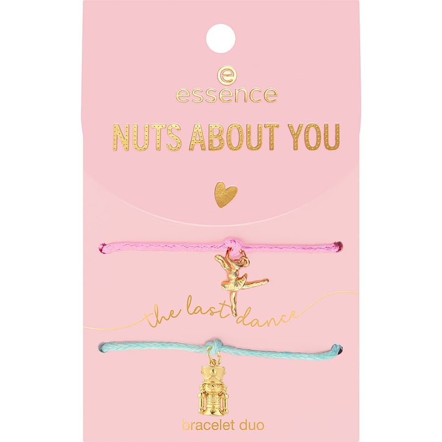 Fejr vinteren med stil med essence NUTS ABOUT YOU bracelet duo 01 The Last Dance. Dette yndige sæt indeholder to justerbare knyttearmbånd i pastelgrøn og lyserød farve, udsmykket med diskrete charms i guld-look.