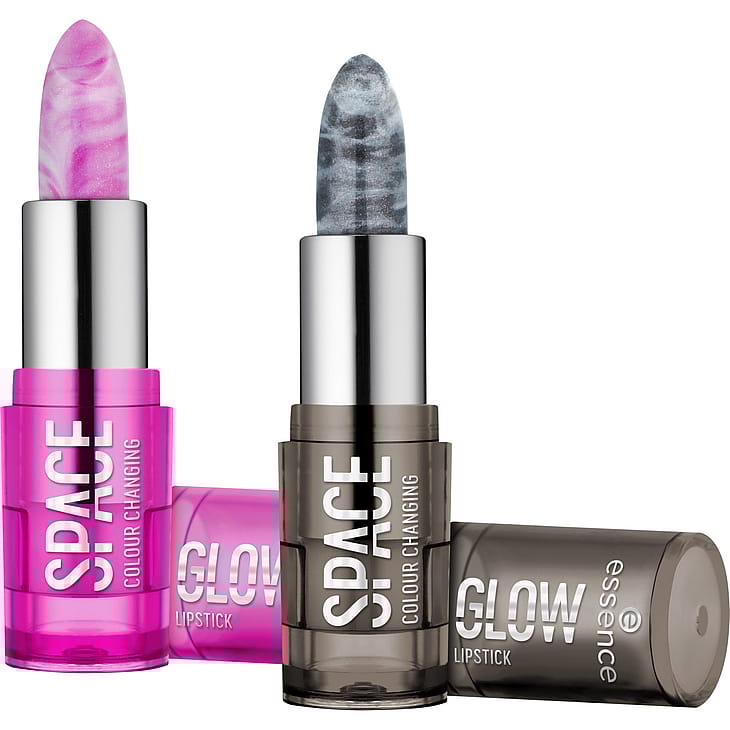 essence SPACE GLOW colour-changing lipstick 01 Galaxy ETHYLHEXYL PALMITATE, SYNTHETIC WAX, HYDROGENATED POLYISOBUTENE, POLYISOBUTENE, CAPRYLIC/CAPRIC TRIGLYCERIDE, TRIDECYL TRIMELLITATE, BIS-DIGLYCERYL POLYACYLADIPATE-2, SIMMONDSIA CHINENSIS (JOJOBA) SEED OIL, TOCOPHERYL ACETATE, MICA, ETHYLHEXYLGLYCERIN, LACTIC ACID, PHENOXYETHANOL, BENZYL ALCOHOL, PARFUM (FRAGRANCE), GERANIOL, LIMONENE, MAY CONTAIN [+/-]: CI 42090 (BLUE 1 LAKE), CI 45410 (RED 27), CI 45410 (RED 28 LAKE), CI 77891 (TITANIUM DIOXIDE). essence SPACE GLOW colour-changing lipstick 02 Universe INGREDIENTS: ETHYLHEXYL PALMITATE, SYNTHETIC WAX, HYDROGENATED POLYISOBUTENE, POLYISOBUTENE, CAPRYLIC/CAPRIC TRIGLYCERIDE, TRIDECYL TRIMELLITATE, BIS-DIGLYCERYL POLYACYLADIPATE-2, SIMMONDSIA CHINENSIS (JOJOBA) SEED OIL, TOCOPHERYL ACETATE, MICA, ETHYLHEXYLGLYCERIN, LACTIC ACID, PHENOXYETHANOL, BENZYL ALCOHOL, PARFUM (FRAGRANCE), GERANIOL, LIMONENE, MAY CONTAIN [+/-]: CI 45410 (RED 27), CI 45410 (RED 28 LAKE), CI 77499 (IRON OXIDES), CI 77891 (TITANIUM DIOXIDE).