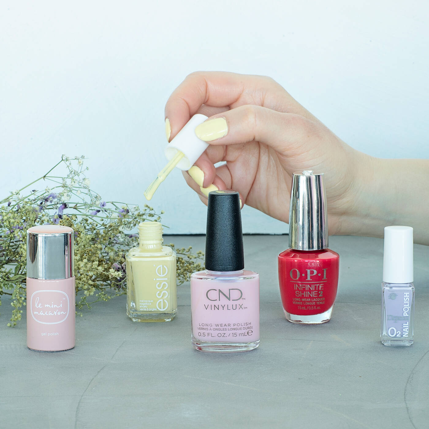 ETHYL ACETATE, BUTYL ACETATE, NITROCELLULOSE, PROPYL ACETATE, ISOPROPYL ALCOHOL, TRIBUTYL CITRATE, TOSYLAMIDE/EPOXY RESIN, ADIPIC ACID/NEOPENTYL GLYCOL/TRIMELLITIC ANHYDRIDE COPOLYMER, STEARALKONIUM HECTORITE, ACRYLATES COPOLYMER, BENZOPHENONE-1, HYDROGENATED ACETOPHENONE/OXYMETHYLENE COPOLYMER, DIMETHICONE, ACETYL TRIBUTYL CITRATE, CITRIC ACID, ISOPHORONE DIAMINE/ISOPHTHALIC ACID/TROMETHAMINE COPOLYMER, PHTHALIC ANHYDRIDE/GLYCERIN/GLYCIDYL DECANOATE COPOLYMER, CALCIUM ALUMINUM BOROSILICATE, SILICA, POLYETHYLENE TEREPHTHALATE, CALCIUM SODIUM BOROSILICATE, OXIDIZED POLYETHYLENE, ETHYL TOSYLAMIDE, SYNTHETIC FLUORPHLOGOPITE, ALUMINA, COLOPHONIUM / ROSIN, MAGNESIUM SILICATE, TIN OXIDE, POLYACRYLATE-4, POLYURETHANE-11, CI 77002 / ALUMINUM HYDROXIDE, ALUMINUM HYDROXIDE, [+/- MAY CONTAIN: CI 77891 / TITANIUM DIOXIDE, CI 19140 / YELLOW 5 LAKE, CI 77491, CI 77499 / IRON OXIDES, MICA, CI 15850 / RED 6 LAKE, CI 77120 / BARIUM SULFATE, CI 15850 / RED 7 LAKE, CI 15880 / RED 34 LAKE, CI 77163 / BISMUTH OXYCHLORIDE, CI 77510 / FERRIC AMMONIUM FERROCYANIDE, CI 77266 [NANO] / BLACK 2, CI 77400 / BRONZE POWDER, CI 77510 / FERRIC FERROCYANIDE, CI 42090 / BLUE 1 LAKE, CI 77288 / CHROMIUM OXIDE GREENS, CI 45410 / RED 28, CI 60725 / VIOLET 2, CI 77400 / COPPER POWDER, CI 15850 / RED 7, CI 75470 / CARMINE, CI 45370 / ORANGE 5, CI 45380 / RED 21, CI 77000 / ALUMINUM POWDER].