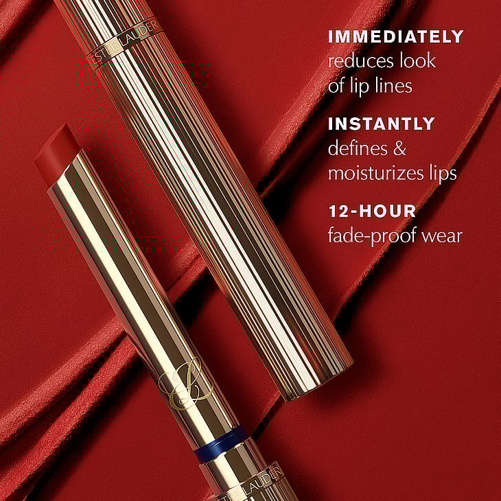 Komplet præcision. Silk Matte Lipstick. Eksplicit farve med ét strøg. 12 timers holdbarhed. Plejer læberne hele dage. Super komfortabel, silkeblød og cremet formel.