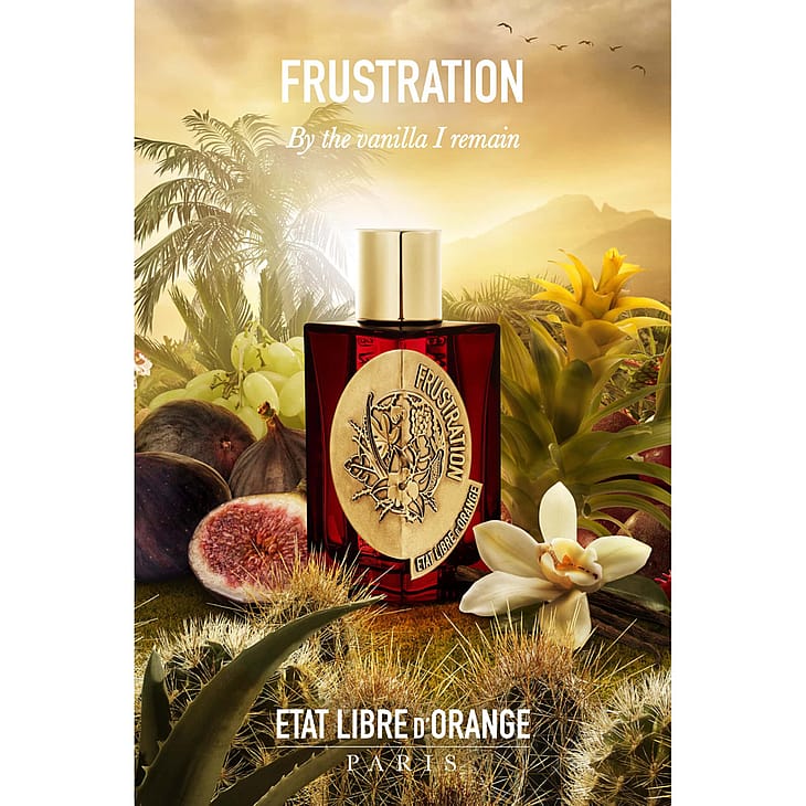 Frustration åbner med en krydret og fyldig top, hvor spidskommen og kanel møder en ren romessens. Hjertet bringer en rund vaniljeoplevelse, som løfter parfumen over det forventede, mens basen giver en tøndet og let røgfyldt bund med vetiver og træagtige akkorder. Kombinationen er sammensat af parfumeur Mathilde Bedjaoui og indgår i Orange Extraordinaire-kollektionen, der fremhæver intense og sjældne råmaterialer i en poetisk helhed.