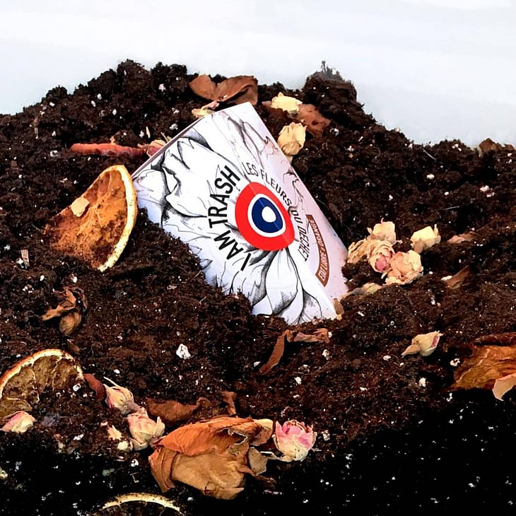 Les Fleurs du Dechet eller I am Trash er den første luksusparfume, der er skabt ved hjælp af upcycling; ved at bruge kasserede ingredienser til at skabe noget virkelig smukt. Mere specifikt ved at bruge henkastede rosenblade, allerede destillerede spåner af sandeltræ og endda rester af æbler fra fødevareindustrien til at skabe den smukkeste blanding af frugt, blomster og træ. Givaudan og Etat Libre d'Orange har skabt et trefoldigt selskab i Moder Naturs tjeneste for at tilbyde hende en buket tilgivelse og lade alle vide - højt og hurtigt - at det snart er for sent.