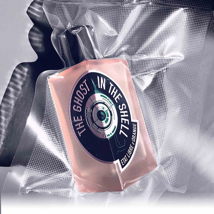 THE GHOST IN THE SHELL er en duft fra fremtiden, hvor natur og teknologi mødes og supplerer hinanden. En fusion af flydende duftende Aqual™ og Yuzu giver liv til en citrusagtig metallisk friskhed. En parfume man kan bære på sig selv ad libitum, når man har lyst. En parfume, der gør dig til evolutionens akse og pil. En moderne parfume.